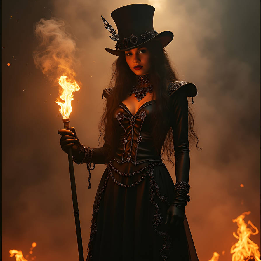 A woman with long auburn hair, wearing an ornately decorated leather dress and a top hat with a hawk feather sticking out of its brim, holding a tall staff crowned with a ruby that burned with an eerie light, she was somehow both ethereal and earthly, like a mixture of Renaissance Faire steampunk and a creature from the Otherworld. For all Jazz knew, she could have been both, although her suspicion, based on everything she’d learned from her studies, was that her spell had invoked a Fire spirit.